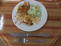 1.グラタンとハンバーグの組み合わせは非常においしく、女性に人気のありそうな一品である。