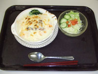 お昼の時間になると大学生だけでなく高校生も食堂を利用しているので、とても混雑する。座席数は多いので、座る場所に困るようなことはない。